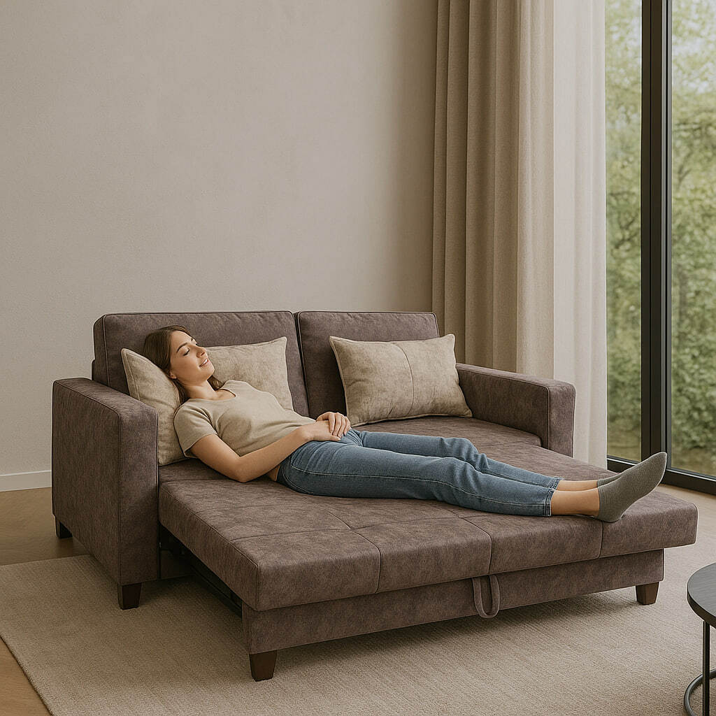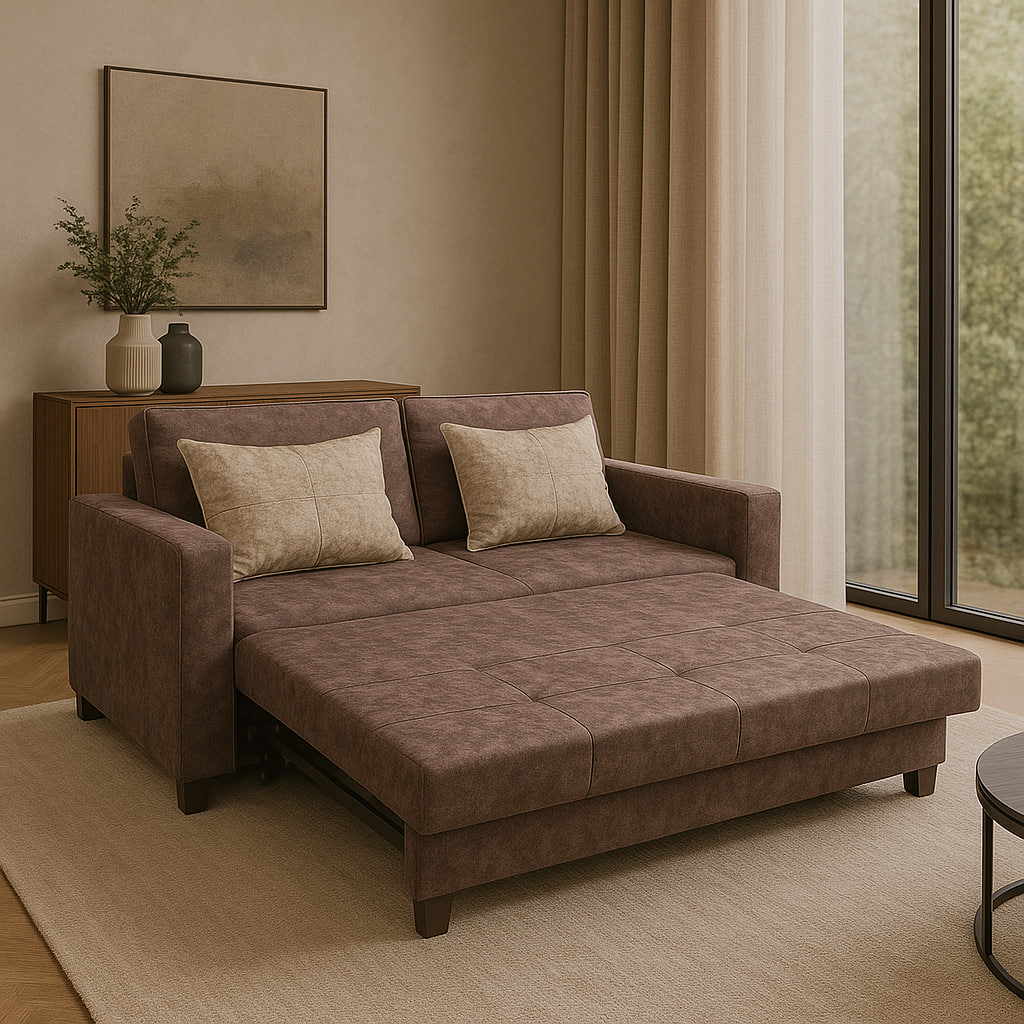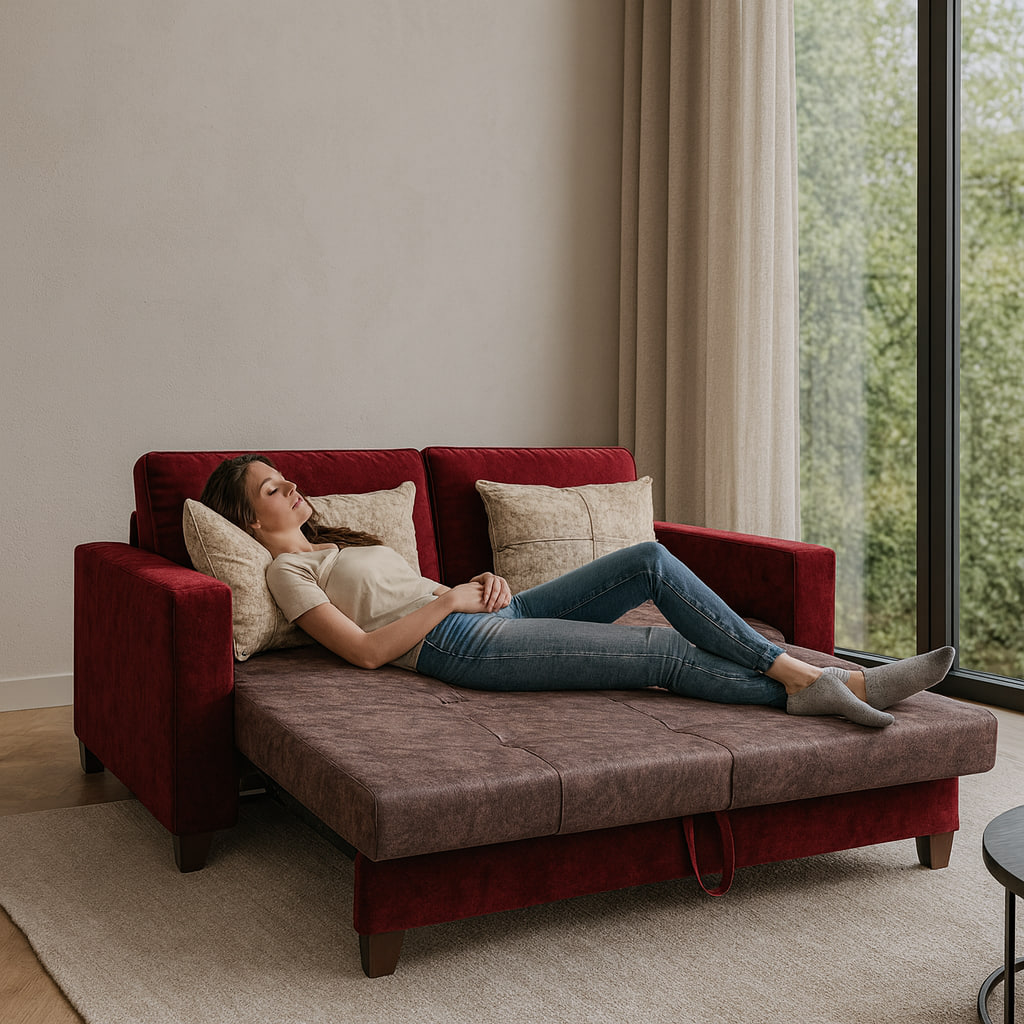 مبل تختخواب شو دونفره شیمر عرض تشک 150 سانتیمتر که برای خوابیدن دو نفر کنار هم بسیار راحت میباشد. همچنین این مدل در زمانی که میخواهید از حالت مبل آن استفاده کنید به تعداد دو تا سه نفر بصورت خیلی راحت میتوانند در کنارهم بنشینند. موارد استفاده این مبل تختخواب شو کم جا دونفره در استراحتگاه های عمومی و خصوصی ویلاها و سوئیت های شخصی و یا حتی هتل ها. بله هتل ها نیز میتوانند در زمان پیک مصرف اتاق هایشان از مبل های تختخوابشو استفاده نمایند. موارد دیگر استفاده از مبل تختخواب شو آرامیس در اتاق های محل کار خود می باشد و حتی مدیران شرکت ها نیز میتوانند برای استراحت کوتاه مدت با استفاده از این مبل تختخواب شو راحتی در اتاق مدیریت خود یک خواب کوتاه مدت راحت و یا آسایش را تجربه کنند.
