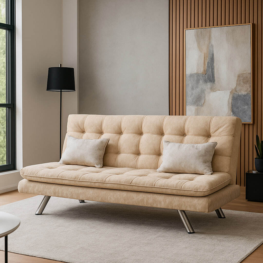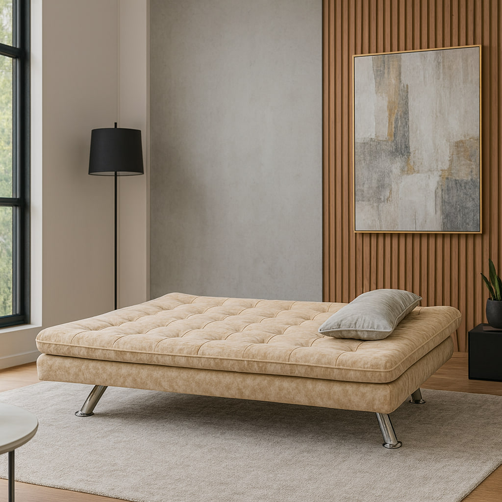 مبل تخت خواب شو دو نفره مدل ایپک که در حالت مبل ابعاد آن 85 در 190 سانتی متر است قابلیت 3نفر نشیمن دارد و دارای حالت ریلکسی می باشد و در حالت تخت ابعاد آن140 در 195سانتی متر است که قابلیت خوابیدن 2 نفر را دارد و باز و بسته کردن این مدل به سادگی و نرمی انجام میشود همچنین دارای دو عدد کوسن به ابعاد 40 در50 سانتی متر است در این تختخواب شو از اسفنج 45 کیلویی با بهترین کیفیت و متریال استفاده شده که باعث طول عمر بیشتر و عدم نشست زود هنگام اسفنج میشود و همچنین کلاف مبل تمام فلز و فنس کشی شده و جک و لولای کار ترک می باشد جهت افزایش استحکام می باشد و پارچه کار یک دست تک رنگ می باشد